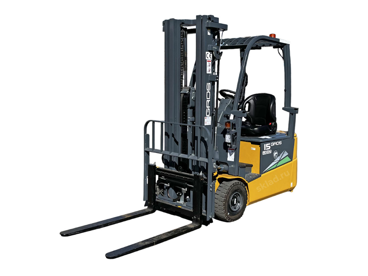Электропогрузчик вилочный трехопорный GROS (Heli) CPD15SQ-DRIVE-IN грузоподъёмностью 1.5т
