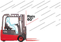 - Класс влагозащиты погрузчика – IPX4, что позволяет ему работать даже в дождь.